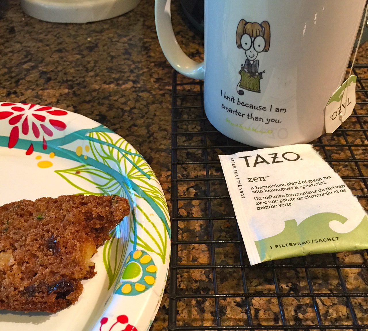 Friday: Wash the mixing bowls and utensils. Eat a slice of zucchini bread—sharing my piece with Little Sister. Put them to bed. Now sit down and eat another slice. All by myself.